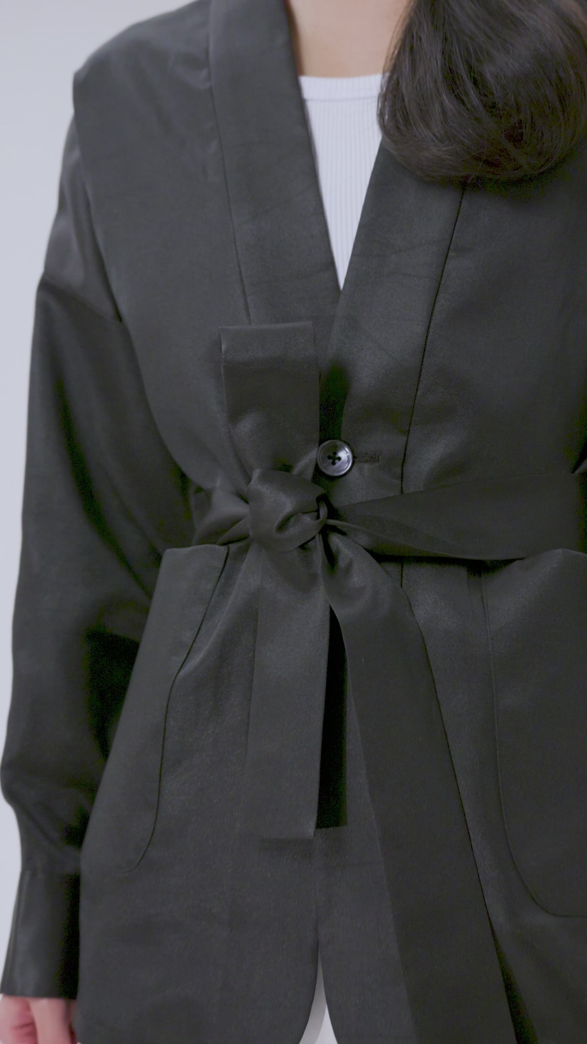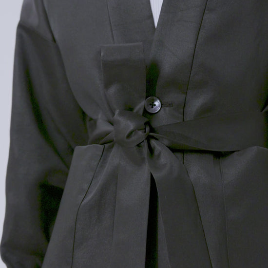 Inspired by the elegance of the kimono, this jacket features shirt-style sleeves for added flexibility and ease, making it effortlessly adaptable for everyday wear.