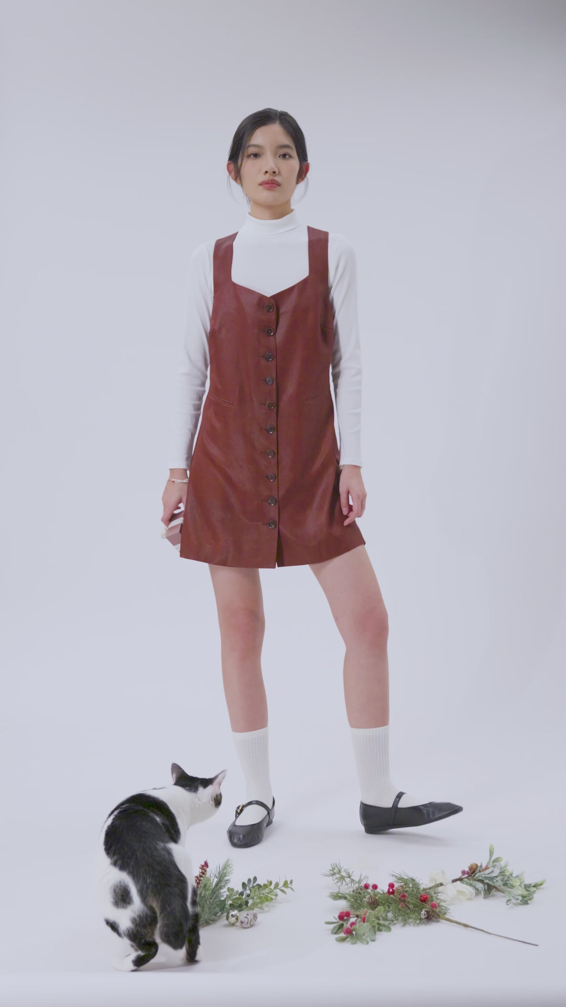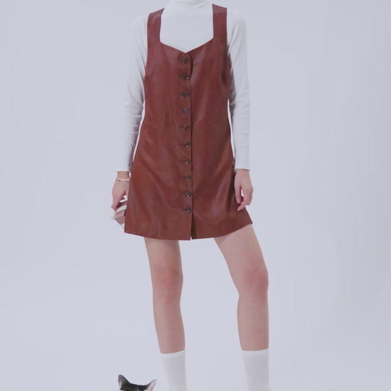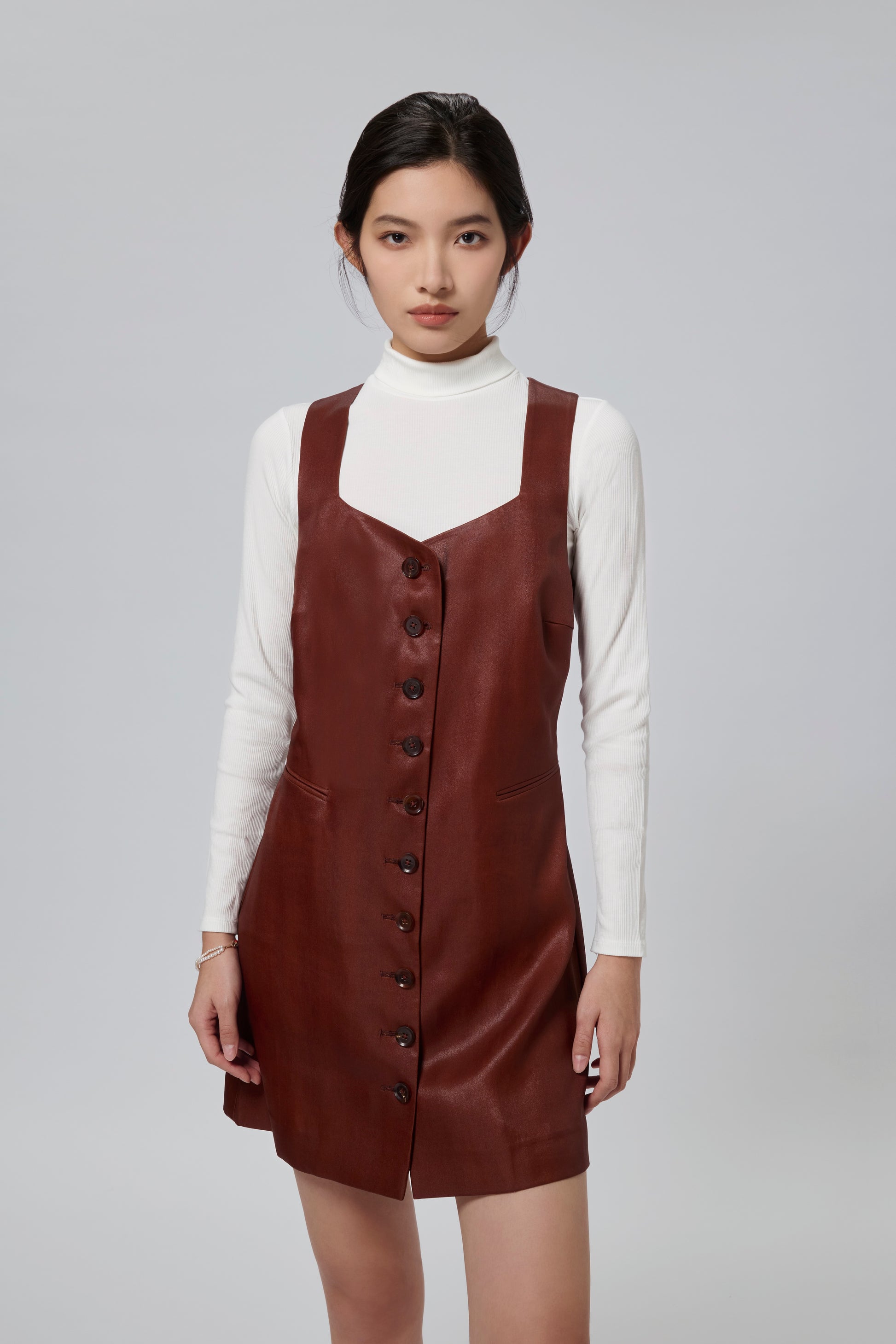 This dress offers a contemporary take on classic tailoring, crafted in rich brown Gambiered Canton Gauze. Its clean, structured silhouette features a flattering square neckline and a full-length button-front closure accented by genuine horn buttons. The gentle gradient and subtle sheen of the hand-dyed silk deliver artisanal sophistication, finished with two sleek welt pockets for added style and utility.