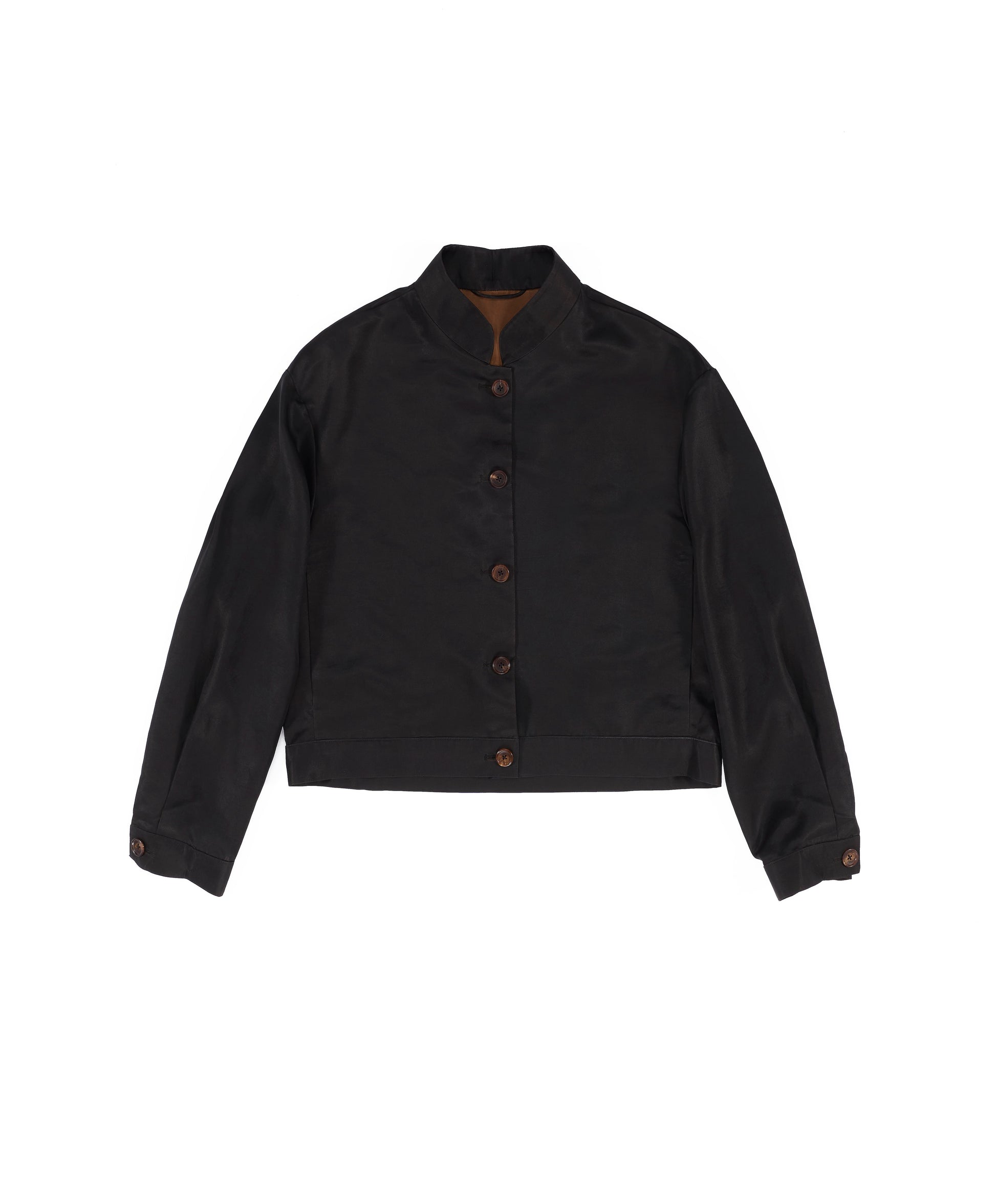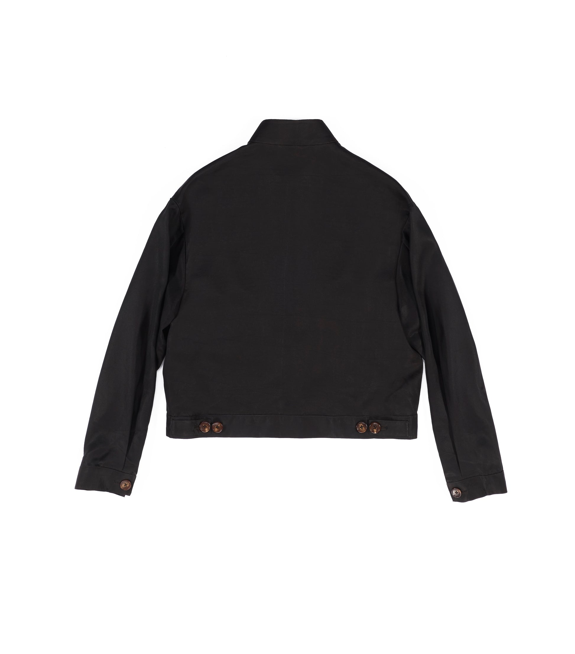 Black Gambiered Canton Gauze Mandarin-Collar Bomber Jacket